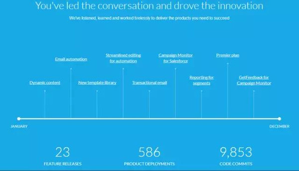 年年月月花相似,但靈感迸發(fā)的設(shè)計(jì)師們可不會拘泥于前人之作。相同的祝福,更高的愿景與期許,更精湛的設(shè)計(jì)巧思,每年的新年網(wǎng)站,無疑都是一場視覺與創(chuàng)意的盛宴。 飛向新出發(fā)點(diǎn)pernod-ricard 網(wǎng)站地址:http://new-year.pernod-ricard.com/ 新的一年永遠(yuǎn)是揚(yáng)帆起航的日子,這對于Pernod-Ricard這一世界級酒類出產(chǎn)商也一樣,正如設(shè)計(jì)師想表達(dá)的那樣——去飛吧,穿過宏偉的云層,來到但愿的神殿。 首頁載入完畢后,設(shè)計(jì)師就讓用戶穿越云層來到第二“天”。首頁氣魄恢宏,全動(dòng)態(tài)頁面向用戶展示了一個(gè)洶涌澎湃的天空世界,也將企業(yè)的格式和愿望顯示的淋漓盡致。而導(dǎo)航頁頁面之上仿佛讓用戶早已登上了云層的頂端,已經(jīng)“一覽眾云小”;一串祝福案牘在畫面正中,先其他元素一步表達(dá)主題。導(dǎo)航欄做成了8個(gè)菱形塊,每一個(gè)幾何體背后都是一段小視頻,展示著企業(yè)的瞻望之意。 但設(shè)計(jì)師不會只知足云層殊效,于是他們在每一個(gè)導(dǎo)航下面,設(shè)計(jì)師將與流動(dòng)、發(fā)生了什么事糅合在一起,而且都是以創(chuàng)意的“飛行模式”展開,充分描繪了趣味性,也讓消費(fèi)者感慨感染到這家公司的好與壞。 寫下你的新年祝福,我為你展現(xiàn) evs新年網(wǎng)站 網(wǎng)站地址:http://xmas.evs.com/summary 作為一個(gè)迎新站,EVS網(wǎng)站的設(shè)計(jì)夸大互動(dòng)這一層面——網(wǎng)站以make anew-year-message為主題,通過自己公司員工進(jìn)行字母演繹,按照用戶所設(shè)定的序列排列出來。而這些都可以由用戶自行“DIY”。第一條“togetherwe’re making extrordinary”則是公司自行設(shè)計(jì)的迎新Slogan,當(dāng)用戶進(jìn)入網(wǎng)頁時(shí)就會自動(dòng)播放,這不但引發(fā)了用戶創(chuàng)造屬于自己內(nèi)容的沖動(dòng),而且還傳遞了自身品牌。 作為一個(gè)廣告服務(wù)公司的網(wǎng)站,EVS新年網(wǎng)站天然在設(shè)計(jì)之上也可圈可點(diǎn),大面積純色排版、富有沖擊力的色調(diào)展示,展示出一個(gè)網(wǎng)站不凡的表現(xiàn)空間。而手寫體的文字、單屏頁面的板式也同時(shí)將網(wǎng)站變成了一個(gè)顯現(xiàn)企業(yè)風(fēng)格的地方。 再見,我們的2015 campaignmonitor新年網(wǎng)站 網(wǎng)站地址:https://www.campaignmonitor.com/2015/ 當(dāng)所有迎新網(wǎng)站大紅大綠之時(shí),源自Saleforce的Campaignmonitor網(wǎng)站卻冷靜的打出自己的主題——“review”,獨(dú)具創(chuàng)意地用數(shù)據(jù)進(jìn)行展示,為其所服務(wù)過的企業(yè)做了一個(gè)宏觀服務(wù)講演。讓“圈里人”人深刻的意識到自己所在的2015年畢竟發(fā)生了什么,也同時(shí)鞏固了企業(yè)的“江湖地位”。 也許源自自身在數(shù)據(jù)運(yùn)營層面極深的造詣,campaignmonitor的設(shè)計(jì)師將網(wǎng)站設(shè)計(jì)出了一個(gè)數(shù)據(jù)講演的味道,長頁面設(shè)計(jì)讓每一頁用不同的顏色以及各種圖表展示出多種數(shù)據(jù)。而且所有頁面都有一個(gè)相互聯(lián)系關(guān)系的主題,從2015年的方方面面展示著企業(yè)所服務(wù)的客戶與整個(gè)營銷“大世界”絲絲縷縷的關(guān)系,讓每個(gè)客戶在讀到頁面之時(shí)都能得到深深的觸動(dòng)。 整個(gè)網(wǎng)站已經(jīng)被設(shè)計(jì)師幾乎完全“數(shù)據(jù)化”,像是一張張商務(wù)幻燈片。但是網(wǎng)站設(shè)計(jì)卻涓滴沒有讓人有閱覽時(shí)的不適感,反而感到每一頁被銜接的恰到好處,而這恰是設(shè)計(jì)師對于網(wǎng)站元素靈活掌握的體現(xiàn)之處——哪幾頁用數(shù)字,哪幾頁用圖片,都是建立在設(shè)計(jì)師節(jié)奏把控之上。 海闊天空 stellar.aero2016年新航線預(yù)報(bào) 網(wǎng)站地址:https://www.stellar.aero/ 新的開端意味著無窮潛力與可能,也象征著未知的機(jī)遇與挑戰(zhàn),這句話對于Stellar航空公司來說不能更加貼切,向天空挑戰(zhàn),挖掘更多的可能無疑成為了他們新一年的目標(biāo)!而這種愿望也被設(shè)計(jì)語言重新描繪,展現(xiàn)在了Stellar官網(wǎng)上,高遠(yuǎn)遼闊的天空,旖旎壯麗的景觀,以及交相照映的“飛機(jī)與天空”的和諧友好,為來年譜寫了一章漂亮的序言。 網(wǎng)站首頁采用長頁面的設(shè)計(jì)形式,利用通屏大背景與文字排版組合,配合殊效,奏響了視覺上華麗的篇章。本站通過表達(dá)“飛機(jī)”與“天空”的關(guān)系,對實(shí)力的塑造交上了滿足的謎底。首頁對殊效的運(yùn)用,不管是視頻的運(yùn)用,仍是流線、幾何圖形的運(yùn)用,都配合行業(yè)特點(diǎn),極為流暢天然,一氣呵成。 而在內(nèi)頁的設(shè)計(jì)上,本站更多采用的是對稱設(shè)計(jì)的形式,遵循對稱的規(guī)則,對圖片和文字進(jìn)行排版,工整有序,簡潔天然。本站較為注重留白的運(yùn)用,不管是圖片比例,仍是頁面設(shè)計(jì),都留給了用戶留下了充分想象的空間。 “無聊網(wǎng)站”第一彈——讓你的新年祝福升空吧 網(wǎng)站地址:http://www.activation-nodeplus.com/archive/cny2015/ activation-nodeplus.com是基于“新年主題”衍生出來的一個(gè)創(chuàng)意策劃——呈現(xiàn)載體為煙花,首頁引導(dǎo)頁過后,關(guān)于創(chuàng)意的使用說明簡潔明了