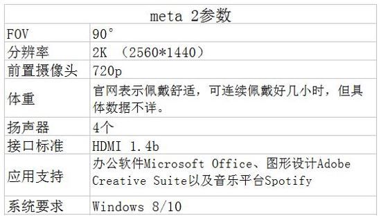 固然AR界老大哥微軟的HoloLens已經(jīng)開始預(yù)售,但同為AR界的另一家美國初創(chuàng)公司Meta也提前發(fā)售了旗下的AR產(chǎn)品——Meta 2。 和HoloLens一樣,Meta 2是一款增強現(xiàn)實眼鏡,戴上它就能夠在你的真實視野里疊加虛擬影像。 參數(shù)方面,Meta 2擁有90度的半透明視野,比HoloLens的視場角要大,二代的投射屏幕分辨率為2560x1440,比擬一代有很大晉升。
