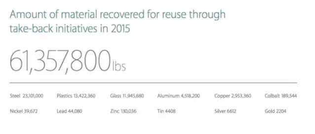 在昨天晚上,蘋果發(fā)布了年度環(huán)保講演,在講演中,蘋果提到,他們從回收項目之中搜集到了大量有用的貴金屬和重金屬,包括鋼鐵、鋁、玻璃以及黃金,總重量高達6100萬鎊,值得一提的是,在這些回收的原材料當中,黃金占到了2204磅(約合999.7公斤),按照黃金回收價格每盎司1229.80美元計算的話,蘋果回收的黃金價值達到了大約4000萬美元,約合人民幣2.6億元。這個數字仍長短常驚人的。
