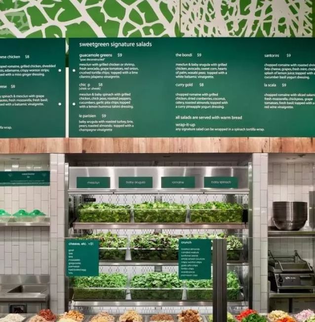 從2013年開始,美國在線 AOL 創(chuàng)始人史蒂夫·凱斯對其多次注入巨額資金。2014年,Sweetgreen 的銷售額達到 5 千萬美元。 如何把“吃草”做成爆品1、拒絕反季節(jié)蔬菜 下一個迎來新變革的將會是食操行業(yè)。美國在過去的十五年里掀起了愈演愈烈的有機食物熱。美國人越來越關(guān)注食物質(zhì)量,這也在提供優(yōu)質(zhì)食材的大型連鎖超市在美國遍地開花。 一部門美國人不僅關(guān)注食品的種類,而且越來越在意自己吃的東西從哪里來。 大多數(shù)人吃到的都是反季節(jié)蔬菜,但是Sweetgreen但愿改變顧客對事物的認(rèn)知。良多食材下固然只在菜單上停留很短的時間就會更換,但顧客也會及時體驗到當(dāng)季的特色食品。Sweetgreen但愿顧客能吃到吃土地里天然生長的食品,人們應(yīng)該尊重大天然、保持和天然的節(jié)拍。 2、有逼格的店面和設(shè)計感的包裝 Sweetgreen每一間店都有唯一無二的設(shè)計,同時一致保持簡約主題、以綠白為主的色彩搭配、綠色的植物,切合其“天然”主題,很受年青人歡迎。 ▼