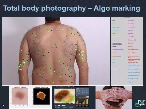 「DermaCompare 這款應(yīng)用可以讓患者通過簡樸數(shù)字?jǐn)z像頭拍攝的『全身攝影(TBP)』,進(jìn)行自我皮膚檢查。」Wayne說道。用戶可以自行下載應(yīng)用和解釋說明到任何帶有數(shù)字?jǐn)z像頭的設(shè)備上。 Wayne 解釋說,一旦病人將他或她的「全身攝影」圖像上傳到他們在 DermaCompare 云服務(wù)器的私有文件,以便存儲和預(yù)覽,那么,DermaCompare 平臺就會(1)將圖像與病人文件中的任意歷史圖像進(jìn)行比對,同時也和公司數(shù)據(jù)庫相關(guān)的圖像進(jìn)行比對;(2)更新病人的文件,創(chuàng)建一個數(shù)據(jù)要點摘要,列出和病人皮膚圖像緊急相關(guān)的數(shù)據(jù),以及任何可疑的圖像變化的預(yù)警信息;(3)通知相關(guān)醫(yī)生獲取、審視打印好的病人的數(shù)據(jù)圖表和全身攝影圖像。它會自動地匹配云服務(wù)器中五千萬種已知痣斑圖像以及病人的歷史圖像。這項技術(shù)極大地增強了醫(yī)生檢測玄色素瘤的精準(zhǔn)度和速度。