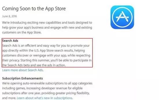 付費推廣 App 展現(xiàn)方式示意圖 另外,每一個搜索結(jié)果頁面只會泛起一個付費推廣的 App,蘋果會以類似 Google Adwords 的付費網(wǎng)絡(luò)推廣系統(tǒng)來決定哪些應(yīng)用泛起在用戶的搜索頁面。 2015年,全球蘋果用戶在 App Store 消費的金額超過200億美元,可用的 App 更是多達(dá)190萬種,這也導(dǎo)致了應(yīng)用曝光的難度加大,良多開發(fā)者反映,在 App Store 上應(yīng)用曝光的機會越來越少,也越來越難題,甚至催生了大量的第三方刷榜機構(gòu),這不管是對于用戶仍是開發(fā)者都并非好事。蘋果表示,這次新增的付費推廣功能將可以匡助更多的 App 取得曝光的機會,也可以讓用戶更利便的獲取到優(yōu)秀的應(yīng)用。 蘋果官方公布, App Store 2.0 將會首先在北美進(jìn)行測試,在今年秋季正式上線。 |