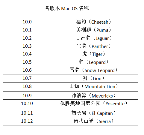 從這些谷歌和蘋果的手機系統(tǒng)命名上,也可以感慨感染到兩家公司文化上的不同。蘋果iOS的命名就是從1數(shù)到10,顯的呆板的同時,可能也讓人感覺更可靠。而谷歌的命名方式,顯然就是塑造了活潑呆萌卻并不那么靠譜的小甜心范兒。 但蘋果Mac OS也喜歡花腔命名 不外,實在蘋果也為自己的Mac系統(tǒng)進行過類似的命名。最初是使用貓科動物的名字,之后發(fā)現(xiàn)不夠用了,而從10.9開始改用了洛杉磯地名。詳細名稱如下: