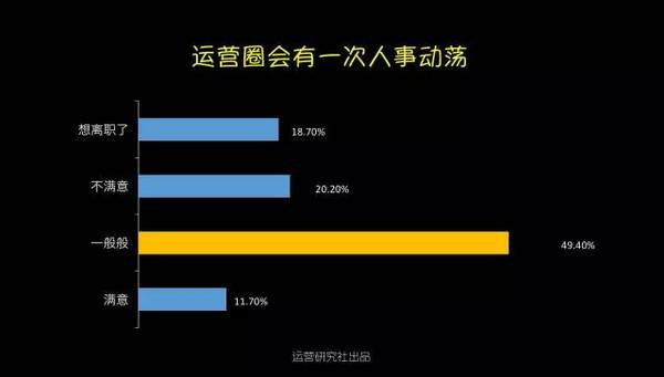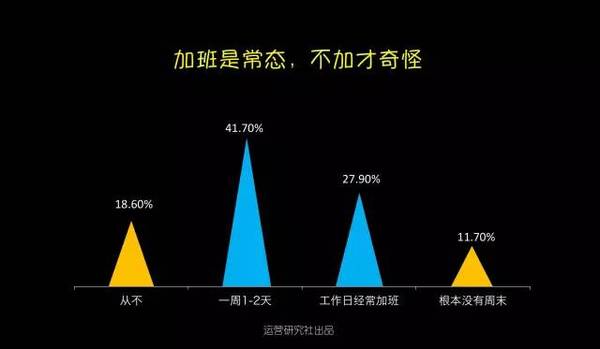 1、運營從業(yè)者的男女比例? 運營從業(yè)者的在性別占比上,15年仍是男生略勝女生,今年則是被完勝10個百分點。無論是在哪家公司做運營,都能夠顯著的感覺的陰盛陽衰。不知道大家是否跟我一樣,尋思著男同胞們都上哪工作了。 不外話說歸來,嘴上在嘀咕,作為男生心里仍是美著呢,究竟身邊美女圍著轉(zhuǎn),加班搬磚也帶勁。 2、運營從業(yè)者的春秋組成? 在16年的運營從業(yè)者中有64.2%是90后,工作十年以上的老司機偏少。項目落地靠90后,掌舵還得靠85前,真正享有運營決議計劃權(quán)的是30歲以上的運營白叟。他們在互聯(lián)網(wǎng)剛起步階段就開始在運營領域摸爬滾打,固然人數(shù)只占了6.6%卻把握了80%的運營資源。 3、運營從業(yè)者的工作方向? 運營是個框什么都能夠往里裝,每次朋友聚會被問到在做什么的時候,你是不是也會緊張,然后腦子里快速閃過最近做的事情,試圖給自己做工作下個詳細的定義,可終極仍是有49.5%的運營無法改變“實在自己什么都做”的真相。 不外從16年運營人生存現(xiàn)狀調(diào)查的結(jié)果中我看到了一個好的趨勢:運營分工開始明細。內(nèi)容和用戶運營的相關從業(yè)者比例晉升到了26%,新媒體運營的比例在下降,越來越多的企業(yè)開始意識到對產(chǎn)品本身運營的價值高過在新媒體渠道的盲目跟進。 4、運營從業(yè)者的工作年限分布? 據(jù)某著名招聘網(wǎng)站數(shù)據(jù)顯示,互聯(lián)網(wǎng)的整體從業(yè)者中工作經(jīng)驗在3年以下的為37.46%,而單從運營崗位分析,0-3歲的運營卻占到了91.5%,比擬于技術、產(chǎn)品、設計,運營作為互聯(lián)網(wǎng)的新興崗位還有很長的路要走。 另外,今年1-3歲運營的占比超過了0-1歲運營,看來仍是有蠻多人選擇在運營這條路上堅持的。 5、運營從業(yè)者的薪資收入? 運營也算是拼資歷了,薪資分布和從業(yè)年限的分布在整體上一致。受工作年限的影響,79.8%的人工資不超過10K,只有少部門運營突破經(jīng)驗限制拿到了10K以上。 今年互聯(lián)網(wǎng)行業(yè)整體均勻薪資晉升了,但是1-3年運營從業(yè)者的薪資水平反倒泛起了下降,相信不少人又該(被)拖后腿了。 6、你運營的產(chǎn)品用戶規(guī)模? 受資本寒冬的影響,今年未上線的產(chǎn)品占比從去年的27.6%下降到了17.8%,用戶規(guī)模在10萬-100萬的產(chǎn)品比例晉升了2個百分點。 對于互聯(lián)網(wǎng)創(chuàng)業(yè)來說10萬用戶規(guī)模是條坎,還有46.1%的產(chǎn)品在努力沖破這條生命線,往前推進意味著融資加速,整體運營節(jié)奏也能夠上正軌。 7、你需要加班嘛? 超過81.4%的運營需要加班,更糟糕的是有11.7%的從業(yè)者根本就沒有周末。拼一點的創(chuàng)業(yè)公司正常的作息時間是“10-10-6”,也就是每周需要工作6天,周末碰到產(chǎn)品或者流動上線基本上就是繼承加班了。 即使不在創(chuàng)業(yè)公司,有一些社區(qū)的運營,周末除了需要更新內(nèi)容和首頁物料,碰到熱門事件還得出內(nèi)容做專題,工作節(jié)奏完全遇上了戰(zhàn)地記者。對嚴苛要求自己的運營來說,糊口即工作,工作即糊口,單身只身汪恨不得把家搬公司了。18.6%表示從不加班的運營,不知道你們公司還招人嗎? 8、你在工作中最缺什么? 跟運營從業(yè)者中大部門是90后有關,65.5%的運營都是工作狂,在他們眼里個人工作成就感比什么都重要。 另外一個比較讓長輩們擔心的現(xiàn)象是:運營從業(yè)者把找另一半的優(yōu)先級放在掙錢、個人時間、旅游之后了。 9、你對現(xiàn)在的運營工作滿足嘛? 預計明年春季在運營圈會有一波大換血和動蕩,超過88.3的運營表示對現(xiàn)在的工作無感,其中18.7%明確提出想離職。 無法學到更多東西、對新增不滿足、企業(yè)發(fā)展遠景不佳,是互聯(lián)網(wǎng)運營人選擇跳槽的主要原因,各位老板們是時候在年底的時候給你想留著的人才加薪發(fā)年終獎啦。 最后是今年新增的一項關于學習的調(diào)查,主要是出于私心想看看現(xiàn)在有多少人缺乏系統(tǒng)學習的機會。讓人值得興奮是不缺學習機會的運營占比想象中高出了3個百分點,但是仍舊有超過90%的運營缺乏學習機會,比擬于零散的微課有75.5%的運營開始熱衷于花更多的時間去系統(tǒng)的學習運營。 附上五條運營對自己學習現(xiàn)狀的吐槽: 1)培訓少領導太忙沒時間指教 2)像我們這種二本不出名學校畢業(yè)的應屆生,第一年真的好難啊。但愿有針對我們的課程。 3)我剛剛轉(zhuǎn)到廣告產(chǎn)品運營,之前也不是做這塊的,有時不知道要往哪方面想,做些什么。最頭疼的是,想請教個人也沒有,由于目前整個部分只有我一個運營。之前還有一個人做這塊內(nèi)容,每次想跟他學習下,他都會說你自己想唄。 4)仍是沒人帶啊沒人帶,自己做了運營方案但又沒能很好地執(zhí)行,學的知識點都是零散的不系統(tǒng)。 5)運營工作職員很難找到一個系統(tǒng)的學習尺度,都是在不斷試探中總結(jié)經(jīng)驗,剛?cè)胄械男“赘杏X要學的太多,不知從何開始。 90后的李叫獸只有一個,但苦逼的運營卻有良多!我們要靜守,一起抱團渡過這段一臉蒙逼的成長。 |