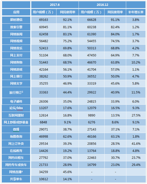 到2017年6月,我國網(wǎng)民規(guī)劃到達(dá)7.51億,半年算計新增網(wǎng)民1992萬人,半年添加率為2.7%;ヂ(lián)網(wǎng)普及率為54.3%,較2016年末提高1.1個百分點。
