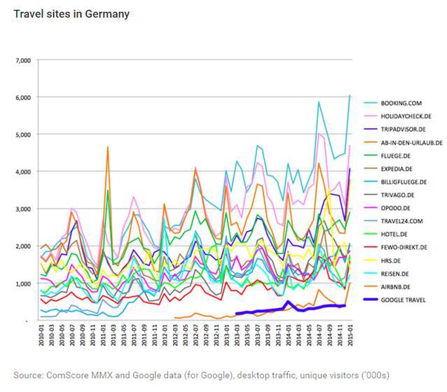 歐盟指責(zé)谷歌人工干涉干與了搜索結(jié)果,不外這里要提醒大家的是,DT君經(jīng)由調(diào)查發(fā)現(xiàn),谷歌受到的指控并不是類似百度這樣的販賣廣告位等,而是將自己的一些產(chǎn)品排在了更優(yōu)先的位置。這些被指控的產(chǎn)品,也都不是最核心的產(chǎn)品,好比Google Travel、Google Shopping等。 谷歌在遭到指控后作出回應(yīng),不無委屈地曬出這些產(chǎn)品在一些歐盟國家可憐的市場份額。谷歌表示,旅行搜索是一個競爭激烈的垂直市場,而自己的據(jù)有率實(shí)在少得可憐。