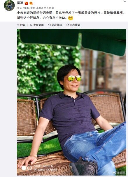 雷軍:墨鏡銷量暴升 是因為我的一張“靚照” |