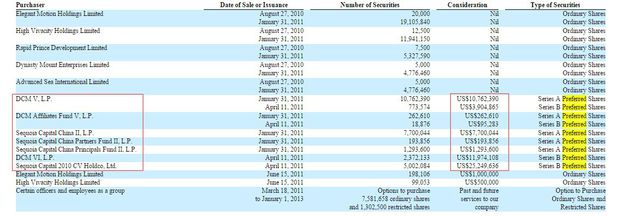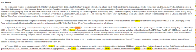 圖1:在窩窩團招股書History一欄中寫到,窩窩團在2011年4月的A-1輪融資中獲得了清科資本的500萬美元融資,2011年的5月到6月,A-2輪融資中獲得清科資本、鼎暉投資和Besto Holdings等共計5000萬美元的融資。在2012年2月B輪融資中再獲得1250萬美元的融資。