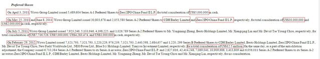 但翻出窩窩團招股書中的History、Preferred Shares及Financing actvities三欄數(shù)據(jù),整個2011年窩窩團共計融資為5500萬美元,約為報道2億融資額的1/4。 2011年4月,清科資本投了500萬美元。接下來5月和6月,鼎暉、清科分別跟投了3000萬、200萬美元。7月,Besto Holdings、天助等機構共計注資1800萬美元。 招股書詳細信息如下:
