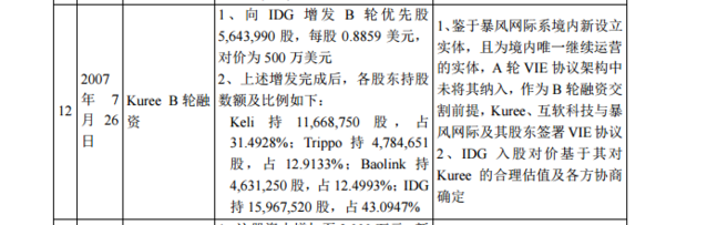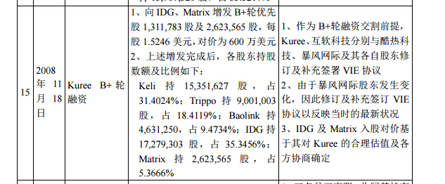 但狂風科技招股書顯示,在2008年11月18日,向IDG、Matrix增發(fā)B+輪優(yōu)先股1,311,783股及2,623,565股,每股1.5246美元,對價為600萬美元,不足報道中1500萬融資額的一半。