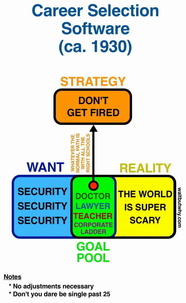 平心而論,父母的糊口通常很糟糕。他不得不做所有糟糕透頂?shù)氖虑,除了最重要的事?mdash;—還有一群需要照顧的自戀又麻煩的小家伙,他們覺得父母就是負責(zé)伺候他們的。忙了一整天,心情郁悶,還有一大堆事情要做,再和孩子們玩為什么的游戲,簡直是一場惡夢。 但是,它卻是一個值得忍受的惡夢。給孩子一道命令、一條訓(xùn)誡或一句至理名言,卻不給他們?nèi)魏味床爝壿嫽A(chǔ)的解釋,就只是在授之以魚,而非授之以漁。假如我們按照這樣的方式成長,等把魚全部吃完后,就會發(fā)現(xiàn)自己既沒有魚竿也不會釣魚,由于我們只學(xué)習(xí)了如何使用安裝好的軟件,卻沒有能力為自己編寫代碼。 學(xué)校會使事情變得更糟。我最喜歡的一個思惟家、作家Seth Godin(他的博客布滿了第一原理的聰明),曾在一期TED節(jié)目里談?wù)搶W(xué)校教育。他說,現(xiàn)行的教育體系體例是產(chǎn)業(yè)化時代的產(chǎn)物,那個時代正視出產(chǎn)力的爆發(fā)和糊口水平的進步。但跟著工廠越來越多,也就需要更多的工人,所以,我們的教育系統(tǒng)圍繞這一目標(biāo)進行了重新規(guī)劃。他解釋說: 其結(jié)果是:普遍的公共教育僅有的目的,就是培養(yǎng)愿意在工廠里工作的人們,而不是培養(yǎng)明天的學(xué)者(由于我們已經(jīng)有良多學(xué)者)。練習(xí)人們循分守紀,適應(yīng)產(chǎn)業(yè)出產(chǎn)!肝覀兓ㄙM整年的時間對你進行塑造。假如你出缺陷,我們還會把你召歸來,然后繼承加工。像所有的工廠一樣,我們把你鋪排在某個位置。我們建立了一個系統(tǒng),這個系統(tǒng)中的所有的人都可以被替代,由于工廠就是以可互換部件為基礎(chǔ)的。」 無獨占偶,另一位我喜歡的作者James Clear,最近也在自己的博客上對此進行了解釋: 20世紀60年代, 創(chuàng)造力行為研究學(xué)者George Land對1600名五歲的孩子進行了一項測試,其中98%的孩童極富創(chuàng)造力。之后每隔五年,Dr.Land都會對每個孩子進行重新測試。當(dāng)這批孩子長到十歲時,只有30%極富創(chuàng)造力。這個數(shù)據(jù)在他們15歲的時候下降至12%,在他們25歲時下降至2%。當(dāng)這些人進入成人階段,便不再有創(chuàng)造力了。用Dr.Land的話來說,非創(chuàng)造力的行為已經(jīng)潛移默化。 這也不難理解。創(chuàng)造力思維本來就和第一原則推理同宗,它們都需要思索者培養(yǎng)出自己的思維方式。人們總說創(chuàng)造性思維是一種天賦,但實在遠沒有這么簡樸:這猶如在白紙上作畫,需要我們的大腦不斷訓(xùn)練,產(chǎn)生新想法主意,但是學(xué)校的教育觀念卻恰恰相反,好比聽從領(lǐng)導(dǎo)、向隊列看齊、變成考試機器。相較于在白紙上作畫,學(xué)校更像是在給孩子們一本填色書,告訴他們不能涂到線框以外。 而終極結(jié)果便是在我們大腦可塑性最強的時候,家長、老師和社會把我們這團粘土球塞進了模具里,然后塑造成了預(yù)設(shè)的外形。 等我們長大一些,因為在早期并沒有學(xué)會如何產(chǎn)生自我的思維方式和獨立看待題目的能力,我們便習(xí)慣性地依靠已經(jīng)預(yù)設(shè)好的模式,那些來自父母老師的、有可能早在30年前就產(chǎn)生的舊思維。 30年也許還算是好的了,不信你仔細想想。 假設(shè)你有一個含辛茹苦的母親,一直用她固有的價值觀把你培養(yǎng)長大,她的價值觀,她所恐驚的和希冀的東西都會影響你。當(dāng)你面臨為什么的時候,也許你會說,由于我媽媽說這是最好的鋪排,由于外面的世界太未知,由于某某某是權(quán)勢巨子,由于我媽媽就是這么說的。 也許今后你面臨人生任何題目你都能用「由于我媽媽就是這么說的」往返答。假如你在工作中習(xí)慣于發(fā)問,那也許你多問幾個為什么就能找到原因;但很可能你更多的是捶胸頓足解釋說由于你媽媽就是這么告訴你的。 但為什么你媽媽這樣說呢? 媽媽這樣說可能是由于她的媽媽這樣告訴她的,一個1932年出生在波蘭成長的人,她的觀念可能是從她的爸爸那里得到的,這個克拉科夫的牧師,有可能是受了他祖父的影響。這個目睹了1866年西伯利亞起義的白叟,可能給予他兒孫最重要的人生經(jīng)驗就是不要和鐵匠為伍。 因為長期從事電話工作,你的母親可能看不起那些整天接電話的辦公室文職工作,而你會以為最好的職業(yè)歸宿是出版業(yè)。但假如有人刨根問底,你到底為什么要這樣選擇,可能你自己也會疑惑。你不確定的原因是由于最深層的促使你產(chǎn)生這些想法主意的基石,來自于這些不同年代和糊口背景的他人的價值觀,而不是你自己的。 一個很常見的例子就是良多我熟悉的人,他們從小被受到過大蕭條時期影響的人養(yǎng)大。假如你所有的職場規(guī)劃都遵從于1920年代出生的人的建議,那接下來你得到的謎底可能就會遵循以下的模式: