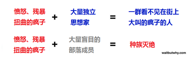 教條,不同于第一原則推理,它并不是根據(jù)信奉者自身和周遭環(huán)境而設(shè)計的,也不會根據(jù)事物的發(fā)展而改變調(diào)整。它不是可以編譯的軟件,而是已經(jīng)寫好的規(guī)則教科書。它可能是特定時間特定地點,一些特定的人根據(jù)特定情況歸納出來的,來自良久之前或者很遙遠的地方,又或者根本沒用任何原因可循。但這也無關(guān)緊要,由于毋庸置疑,你不會刨根問底,你只會接受它,擁護它并靠它指導(dǎo)糊口。 你可能也不喜歡按照別人的教條糊口,但是,你沒有太多的選擇。當(dāng)童年時的疑問得到的回答卻是 「由于我就是這么說的」的時候,你開始得到這樣的暗示「我自己的歸因能力烏煙瘴氣,假如不想搞砸自己的人生,就乖乖服從前人的經(jīng)驗,別去努力了!钩砷L的過程中,你開始對自己的思辨能力沒決心信念。當(dāng)你不再嘗試靠自己的思維去理解事物的因果,你便失去了揭開表面探尋自我價值的機會,也無法在痛苦的實踐過程之后學(xué)會自我調(diào)整。你沒有了自己的推理,你充其量只是一個推理興趣者。 只有強盛的分析推理能力才能規(guī)劃出一條不同凡響的人生之路,假如沒有它們,教條很快就讓你和其他人的人生一樣。教條并不了解也不關(guān)心你,有時候甚至完全誤導(dǎo)你。這會讓一個本來能成為快樂畫家的人成為了律師,反之亦然。 但是,假如不知道如何推理,你就不知道如何進化或者適應(yīng)。假如伴隨你成長起來的教條并不適合你,你可以拒絕它,但是,作為一個業(yè)余推理選手,獨立走過一段路后,終極你會跳上其他人的船,遵循其他模式。你不知道怎么編寫你自己人生的代碼,所以你只好安裝其他人的程序。 人們不會有意識地去做這樣的事情,通常,假如拒絕某類教條,實在就是想要擺脫教條思維下的糊口,勇敢獨立思索。但是,教條思維是種很難打破的習(xí)性,特別當(dāng)它是你獨一知道的思維方式的時候。 我有一個朋友剛有了孩子,她告訴我說,她比她父母的觀念更為開放,由于她父母要求她有一份固定的事業(yè),但她答應(yīng)自己的孩子做任何事。過了一會兒,她解釋道,「當(dāng)然,我的意思是,假如她說她要在蒙塔納的農(nóng)場渡過一生,我會覺得還好,這點我爸媽是絕對不答應(yīng)的。但是,假如她說她會在一個對沖基金公司做事,我會殺了她。」她意識到她并沒有從教條思維中解放出來,相較她的父母,她只是換了一個教條的外殼罷了。 這就是教條的陷阱,很難逃脫。特別是當(dāng)教條碰到一個強有力的聯(lián)盟——集團時,威力更為明顯。 部落我以為一些東西是很守舊的,或者長短常不嚴謹?shù)。一些人以不變?yīng)萬變,對此我很懷疑。每一件事都用相同的方法解決,對我來說毫無意義。—Louis C.K. 最教條的想法主意可以用Seth Godin的名言概括:想成為我們這樣人,就做一樣的事。 這是部落文化( tribalism)的口號。 還有個重要的區(qū)別,部落文化老是具有消極含義,但部落概念本身并不消極。一個部落僅僅是一群有共同點的人集合起來,同樣的信奉、種、國籍、家族、人生觀、目標(biāo)等;浇毯兔绹裰鼽h都是部落。 澳大利亞人是一個部落。Radiohead迷是一個部落。阿森納迷是一個部落。紐約音樂戲院景是一個部落。天普大學(xué)是一個部落。大而疏松的部落包含很多小而緊密的次級部落。你的大家庭是一個部落,而直系支屬是一個次級部落。美國人是一個部落,德州是一個次級部落,對于阿馬里洛的福音教徒來說,德克薩斯州是更次級的部落。 部落文化的好壞取決于部落成員以及他們之間的關(guān)系。一個特別簡樸的區(qū)別: 當(dāng)部落和部落成員各自擁有獨立身份,只是碰勁有交集時,這樣的部落文化就是好事。部落成員選擇成為其中一員,由于部落正好和自己很搭。假如部落或者部落成員不再適合彼此,成員就會離開這個部落。我們將此稱為「自覺的部落文化( conscious tribalism)」。 當(dāng)部落和部落成員身份統(tǒng)一時,這樣的部落文化就是壞事。這種情況下,部落成員身份取決于部落教條。部落改變了,部落成員身份也隨之改變。成員身份的改變無法獨立于部落,由于他們沒有獨立身份。我們將此稱為「盲目的部落文化(blind tribalism)」。 自覺的部落文化以為,部落成員及其身份是首位的。成員身份是帶頭老大,他是誰決定了他加入哪個部落。但是盲目的部落主義以為,部落第一。部落是老大,它決定你是誰。 這不長短黑即白——是一個光譜,一個范圍—— 但是,長大后沒有強有力的推理能力的人會缺乏強盛的自我認同,在各種事情上,易委身于盲目部落主義,特別是他們出身時接觸到的各種部落教條。這也是愛因斯坦下面這句話的意思,「很少有人能掙脫自己所處社會環(huán)境偏見的影響,平靜表達不同的觀點,大多數(shù)人甚至都無法形成這樣的觀點! 一個大的部落,好比信奉、民族或者政治集團,會包適整個光譜范圍中的各種成員,從盲目到具有自覺意識。但是,一些部落本身會成為吸引特定成員的部落類型。邏輯上,一個部落越嚴格、越教條,就越可能吸引到那些喜好盲從的人。ISIS擁有的盲從成員的比例會遠高于倫敦哲學(xué)俱樂部。 教條部落的誘惑也在情理之中——它們吸引著人道的核心部門。 人類渴想聯(lián)系和友情,核心教條能將不同個體聯(lián)結(jié)成一