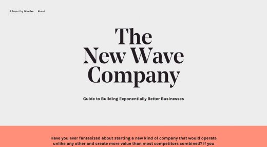 過去幾年中,網(wǎng)站設(shè)計中十分流行大標(biāo)題背景圖像,上面常常有文字說明,這也是大多數(shù)訪客瀏覽網(wǎng)站時首先看到的東西。而在大標(biāo)題背景圖像如斯流行的情況下,你的網(wǎng)站如何能脫穎而出呢?采取相反措施。近來泛起的一些網(wǎng)站逆勢而行,即沒有大標(biāo)題背景圖像。我猜,他們這樣做不僅僅是不愿意追隨潮流,而且也在尋求進(jìn)步網(wǎng)站的機(jī)能與速度。New Wave Company的網(wǎng)站就體現(xiàn)出這些特點。它使用大標(biāo)題歡迎訪客,大字體集中在網(wǎng)頁中央,但標(biāo)題后面沒有大背景圖片。這是一種高雅的做法,效果并不次于其他使用大背景圖像的流行網(wǎng)站設(shè)計。
