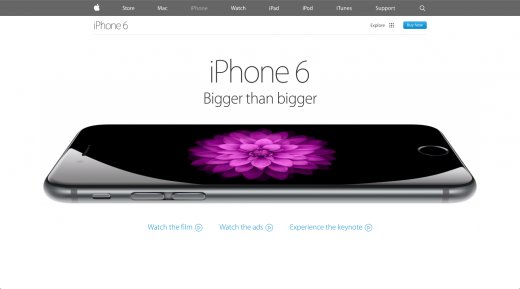 今天泛起的大多數(shù)新網(wǎng)站傾向于更長的頁面,并通過動彈方式翻頁。跟著移動設(shè)備越來越受歡迎,以動彈方式瀏覽顯示器上的內(nèi)容變得越來越常見,正代替點擊方式,特別是在設(shè)備的主頁面上。對于用戶來說,以動彈翻頁的方式獲得信息顯然比不斷地點擊按鈕更簡樸。 主頁并非動彈翻頁越來越流行的獨一地方。跟著超長動彈網(wǎng)站(即一頁式網(wǎng)站)日益變得熱點,動彈帶來的好處也更多,除主頁面外的其他很多地方也開始泛起這種模式,好比有關(guān)網(wǎng)頁以及產(chǎn)品網(wǎng)頁等,它們都已成為展示各種內(nèi)容的簡樸顯示方式。好比,蘋果iPhone 6的動彈翻頁方式已經(jīng)擴(kuò)展到很多地方,可以展示該產(chǎn)品各種特點和機(jī)能。此外,iPhone 6網(wǎng)站也增加了一些流暢的動畫,讓動彈體驗在視覺上變得更具吸引力。