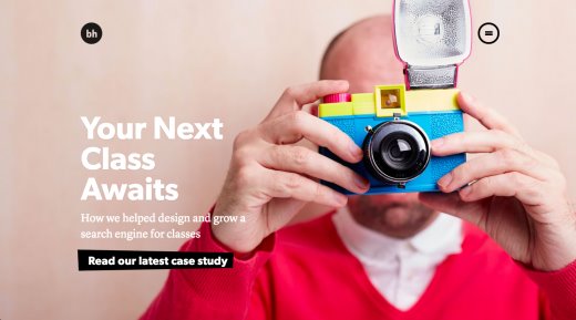 圖庫照片依然在設(shè)計中據(jù)有一席之地,但是對于大多數(shù)最新泛起的網(wǎng)站來說,圖庫照片開始采取高質(zhì)量的專業(yè)攝影照片,它們通常是唯一無二的,專為網(wǎng)站自定義拍攝的。使用自定義攝影比僅選區(qū)圖庫照片在設(shè)計方面取得了更大提高,它讓你的網(wǎng)站唯一無二,其他網(wǎng)站無法使用同樣的照片。好比,Grain and Mortar網(wǎng)站的自定義照片使用了該網(wǎng)站的大標(biāo)題,這展現(xiàn)出個性化效果,由于照片上的人和辦公場景都是在Grain and Mortar真實存在的,究竟沒有假辦公空間的圖庫照片!