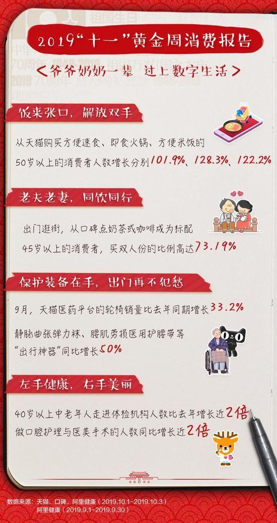 10 月 6 日音訊,阿里發(fā)布《阿里巴巴 2019「十一」黃金周消費(fèi)數(shù)據(jù)陳述》顯現(xiàn),陳述顯現(xiàn),本年十一黃金周,線上消費(fèi)呈現(xiàn)精致化、高效化、智能化趨勢(shì),