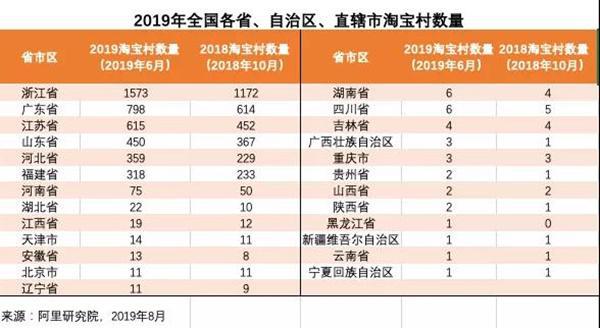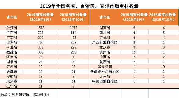 日前,阿里研究院發(fā)布2019年淘寶村、淘寶鎮(zhèn)名單。到2019年6月,全國(guó)共有4310個(gè)淘寶村、1118個(gè)淘寶鎮(zhèn)。