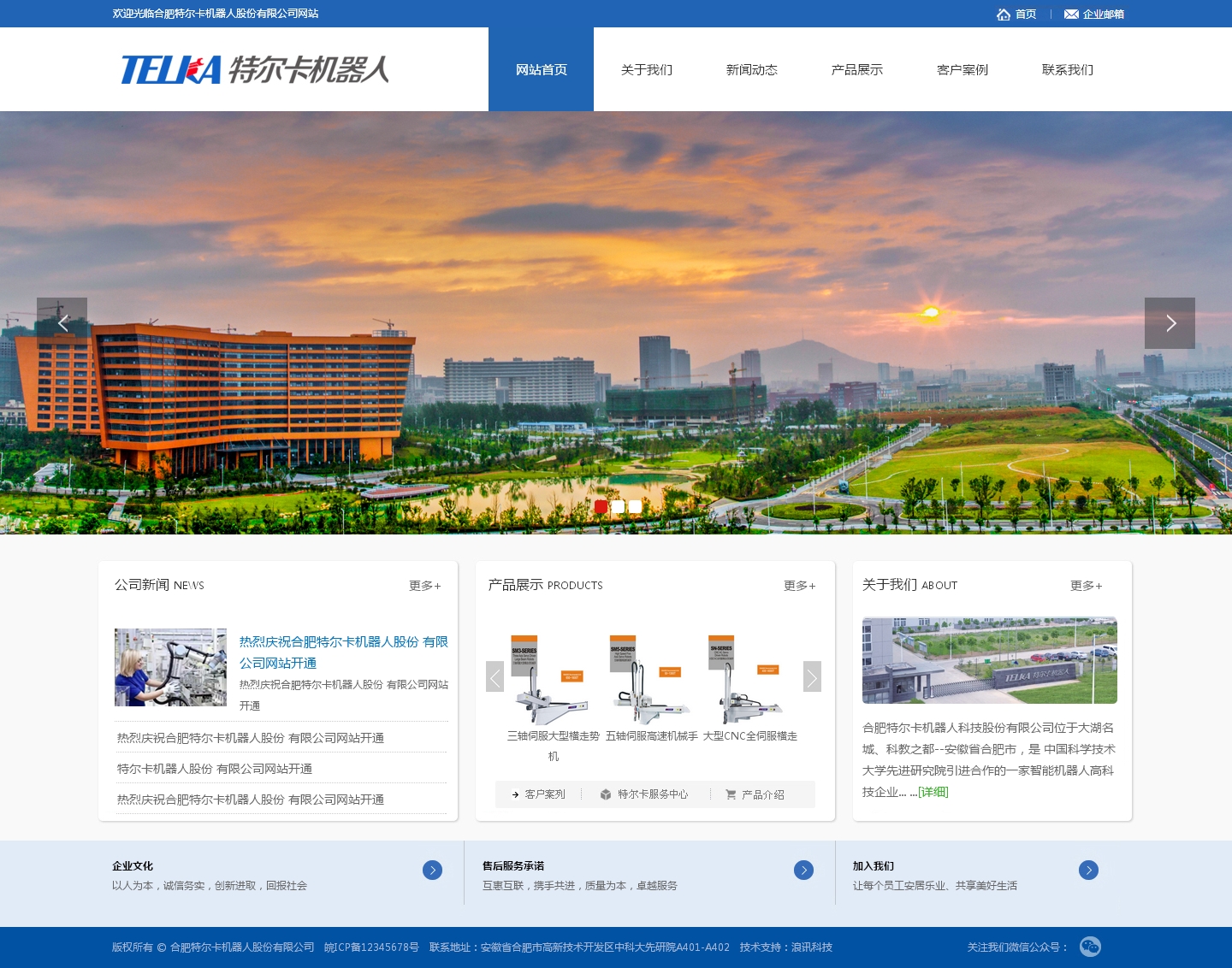 客戶案例:http: www telka com cn 合肥特爾卡機器人科技股份有限公司位于大湖名城、科教之都--安徽省合肥市,是中國科學技術(shù)大學先進