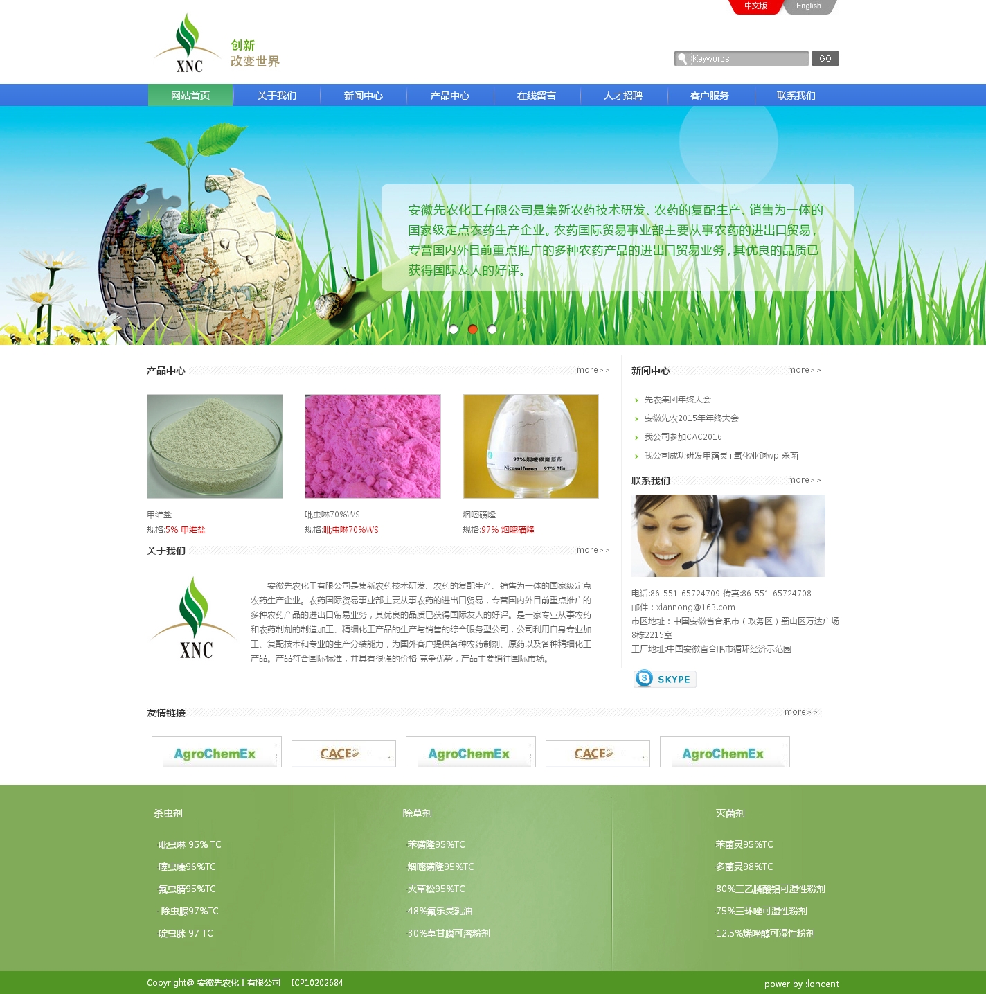 客戶案例:http: www xn-chem com 安徽先農(nóng)化工有限公司是集新農(nóng)藥技術(shù)研發(fā)、農(nóng)藥的復(fù)配生產(chǎn)、銷售為一體的國家級定點農(nóng)藥生產(chǎn)企業(yè)。農(nóng)藥