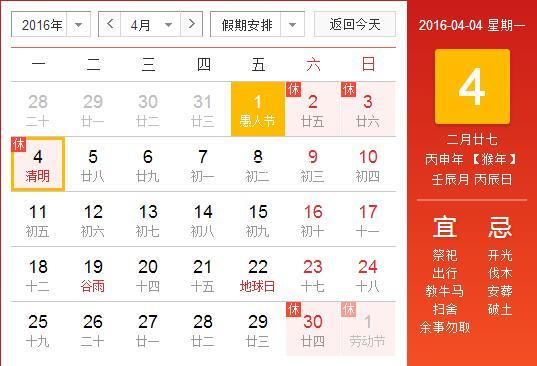 2016清明節(jié)假期將至,根據(jù)根據(jù)國家節(jié)假日放假劃定,并考慮公司的實際情況,公司特將2016年清明節(jié)放假做以下鋪排,請各位員工參照執(zhí)行! 1