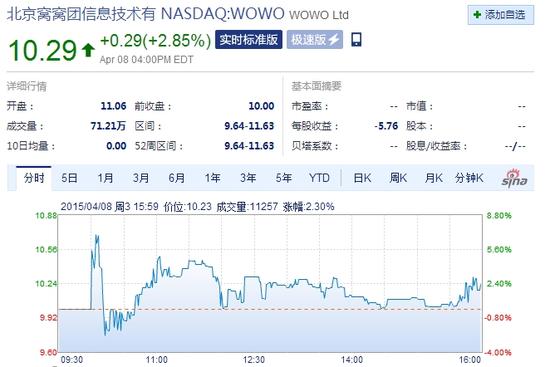 新浪科技訊 北京時間4月9日凌晨動靜,窩窩團在美國納斯達克全球市場成功掛牌交易,股票代碼為WOWO,發(fā)行價為每股ADS 10美元,每股ADS