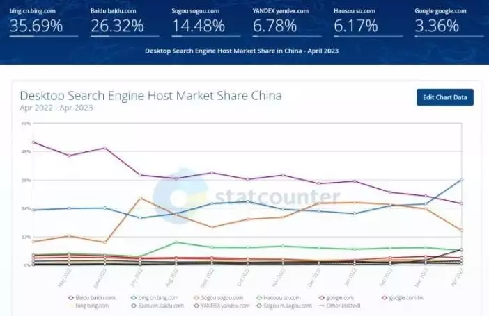 2023年5月22日音訊,據(jù)StatCounter的數(shù)據(jù)顯示,在中國(guó)內(nèi)地桌面查找市場(chǎng)上,到2023年4月,微軟必應(yīng)的份額再次創(chuàng)出歷史新高,達(dá)到了37.4%,