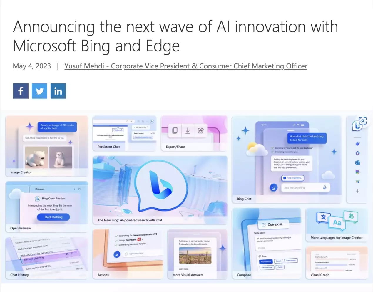 5月4日,微軟博客宣布,下一代AI驅(qū)動(dòng)的Bing(必應(yīng))搜素引擎和Edge瀏覽器將不再有候補(bǔ)名單,用戶可以直接經(jīng)過(guò)微軟帳戶登錄Bing。