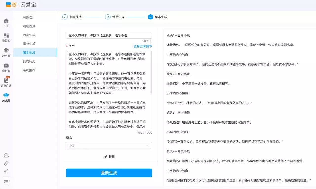 3 月 27 日音訊,一站式視頻處理計(jì)劃提供商:一覽科技今日推出業(yè)界首個(gè)基于 GPT 大模型的“文本 + 圖片 + 虛擬人” 視頻 AIGC 全域工作流。首期上線(xiàn)產(chǎn)品為集創(chuàng)意、情節(jié)、腳本自動(dòng)生成于一體的“AI 編劇”,
