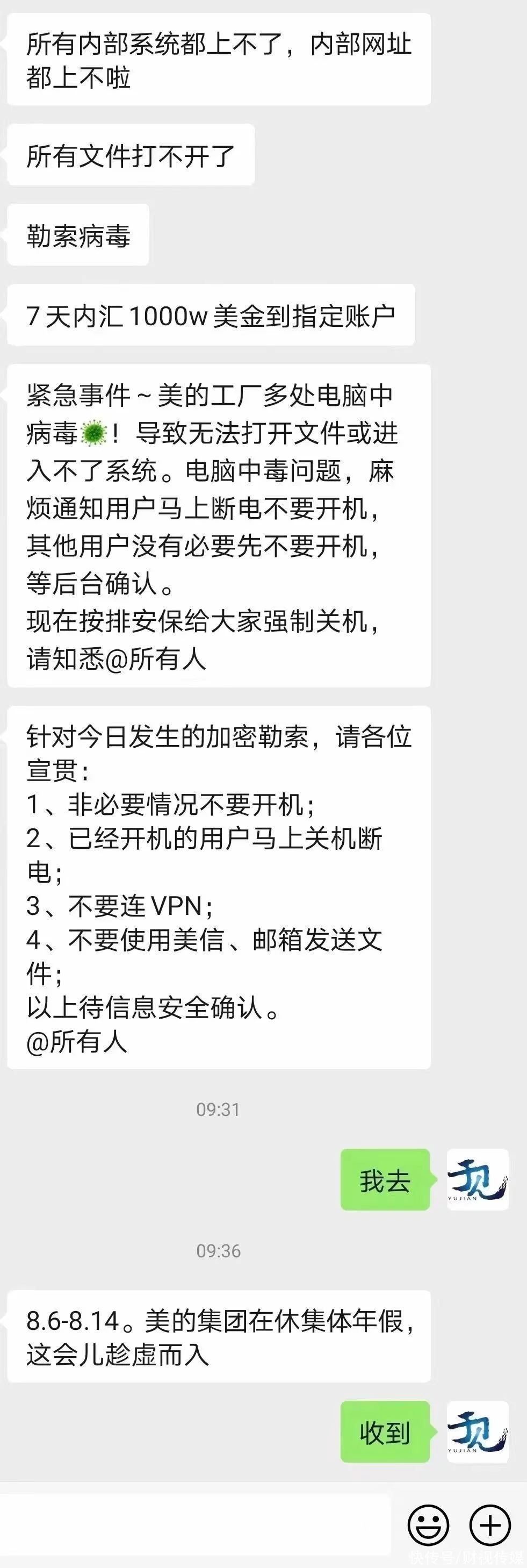 8 月 11 日消息,據(jù) 21 世紀(jì)經(jīng)濟(jì)報(bào)導(dǎo),今日有消息稱(chēng)美的工廠遭受病毒進(jìn)犯并被黑客勒索千萬(wàn)美元。 對(duì)此,