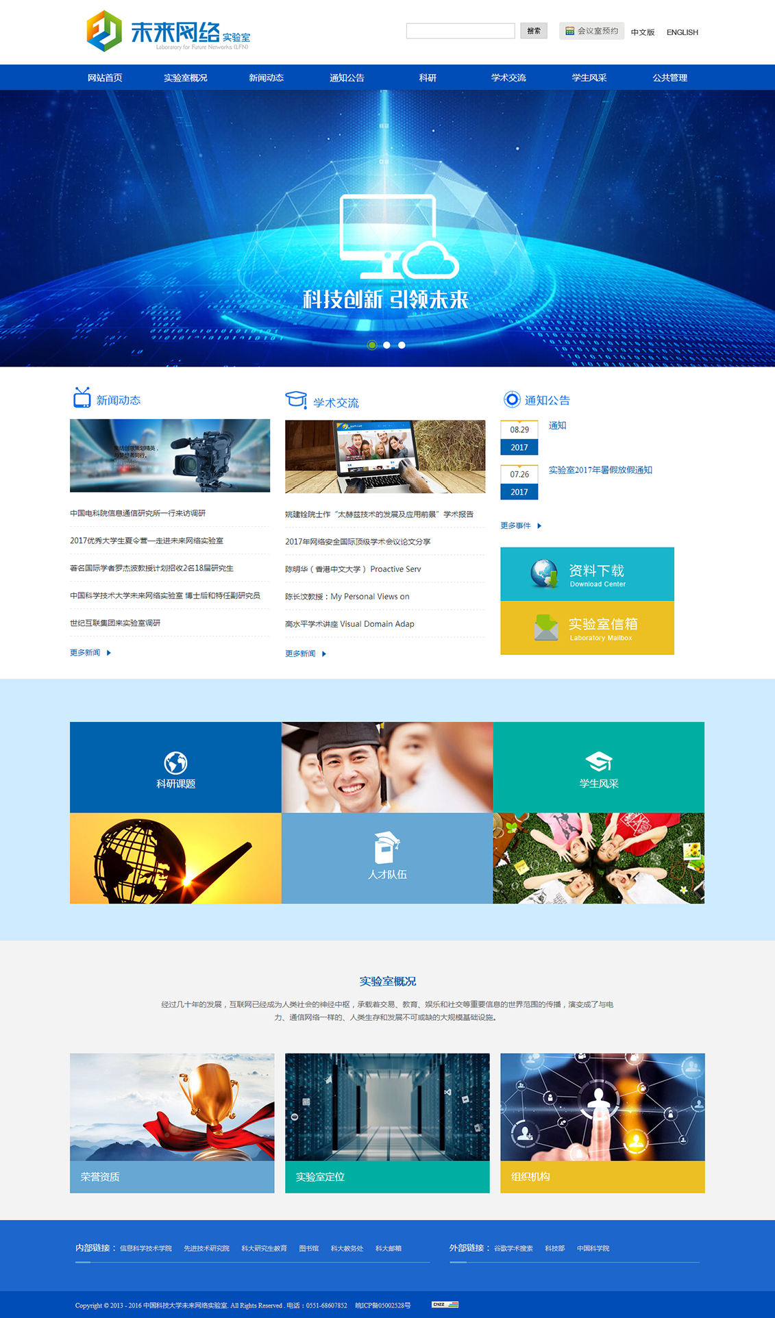面對(duì)著未來(lái)網(wǎng)絡(luò)研究的打好歷史機(jī)遇,肩負(fù)著開(kāi)發(fā)更好未來(lái)網(wǎng)絡(luò)的歷史使命,中國(guó)科學(xué)技術(shù)大學(xué)網(wǎng)絡(luò)研究者們?cè)谛nI(lǐng)導(dǎo)的大力支持下,與2013年5月成立了未來(lái)網(wǎng)絡(luò)實(shí)驗(yàn)室(英文名稱(chēng)為:Laboratory for Future Networks,簡(jiǎn)稱(chēng):LFN)。希望以此為平臺(tái),凝聚校內(nèi)外資源,與國(guó)際頂級(jí)團(tuán)隊(duì)展開(kāi)合作,共同開(kāi)啟激動(dòng)人心的未來(lái)網(wǎng)絡(luò)研究與創(chuàng)新之門(mén)。