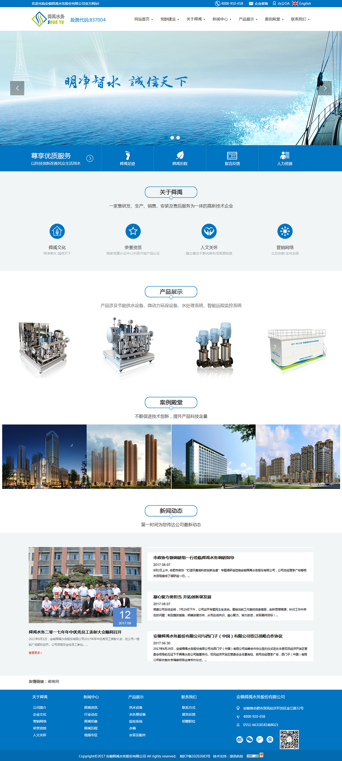 安徽舜禹水務(wù)股份有限公司成立于2011年,坐落于合肥市雙鳳經(jīng)濟(jì)開發(fā)區(qū)核心區(qū)域,總股本9521萬股,公司股票代碼為:837004,是國內(nèi)二次供水行業(yè)率先掛牌的企業(yè)。公司的主要產(chǎn)品涉及節(jié)能(智能)供水設(shè)備、智能模塊化環(huán)保設(shè)備、環(huán)保工程系統(tǒng)、智能遠(yuǎn)程監(jiān)控系統(tǒng)、智慧水務(wù)整體解決方案等,是一家集研發(fā)、生產(chǎn)、銷售、安裝及運(yùn)維服務(wù)為一體的國家級高新技術(shù)企業(yè),填補(bǔ)了安徽省智能供水、智能模塊化污水處理、遠(yuǎn)程監(jiān)管系統(tǒng)領(lǐng)域的空白。